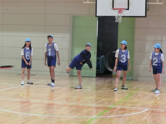 6年生の体育です。『アルティメットゲーム』の第1時間目です。