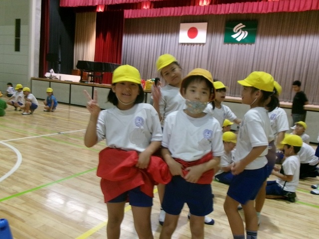 昼休みには、たくさんの金谷っ子が体育館に集合しました。種目は、1年生と6年生による玉入れと2年生のデカパンリレーです。運営委員さんの司会で始まりました。この日に向けて、一生懸命練習したチームもあったそうです。友達を力を合わせて勝利を目指しました。ミニ運動会2終了後、運営委員さんは、今回の企画についての振り返りをしていました。表情が凜々しく、リーダーらしい顔つきになっていることを頼もしく感じました。